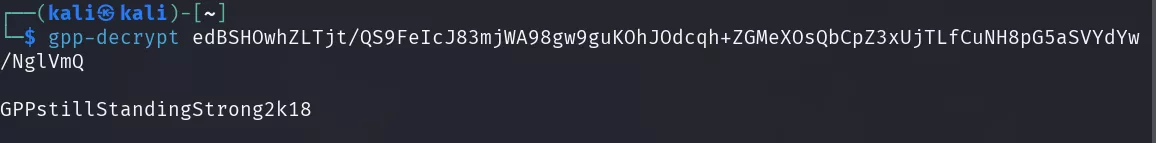 How do we know we need to use gpp-decrypt? The cpassword field is the unmistakable signature of an encrypted GPP password.